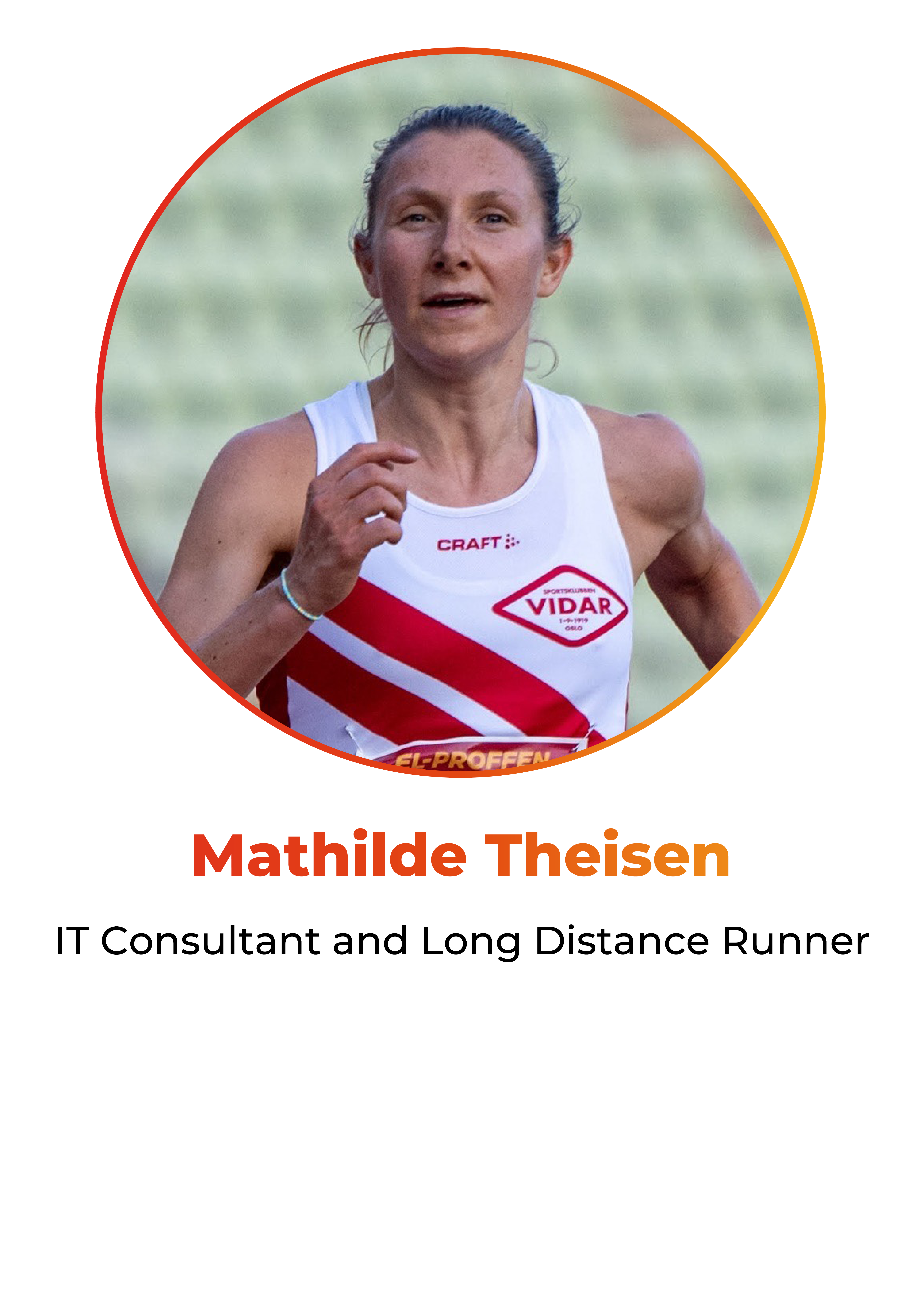 Mathilde is a Norwegian long-distance runner that started running in 2020, and rapidly rose to the national level. In 2021 she got the privilege to represent Norway at the European Cross Country Championships.