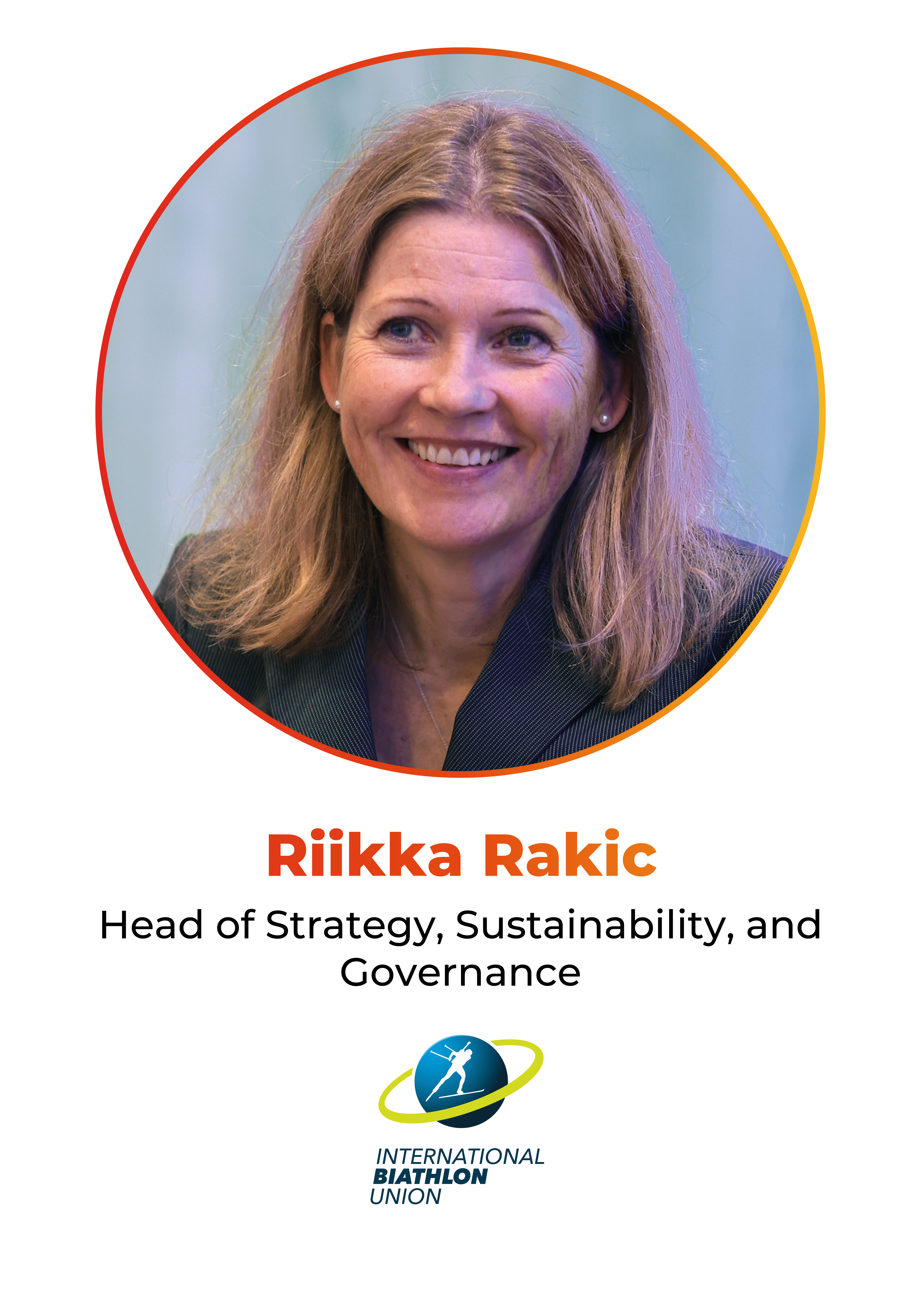 Riikka Rakic is currently the Head of Strategy, Sustainability and Governance at the International Biathlon Union, where she also manages the implementation of the IBU’s strategic plan.